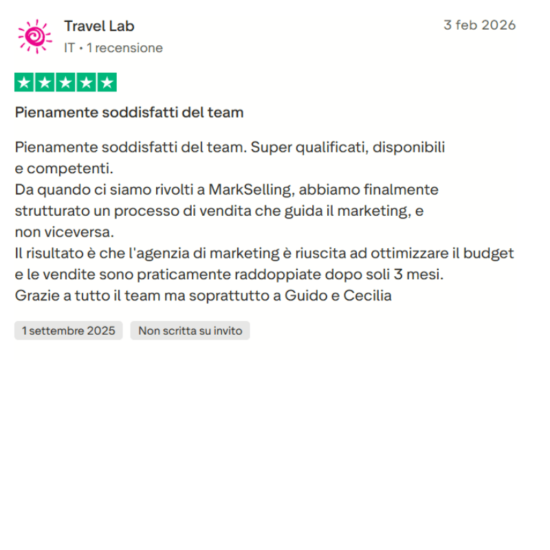 Lavoriamo solo con Aziende, Coach e Liberi Professionisti che possiedono una lista di almeno 1.000 Lead acquisiti realmente. (No database acquistati).
